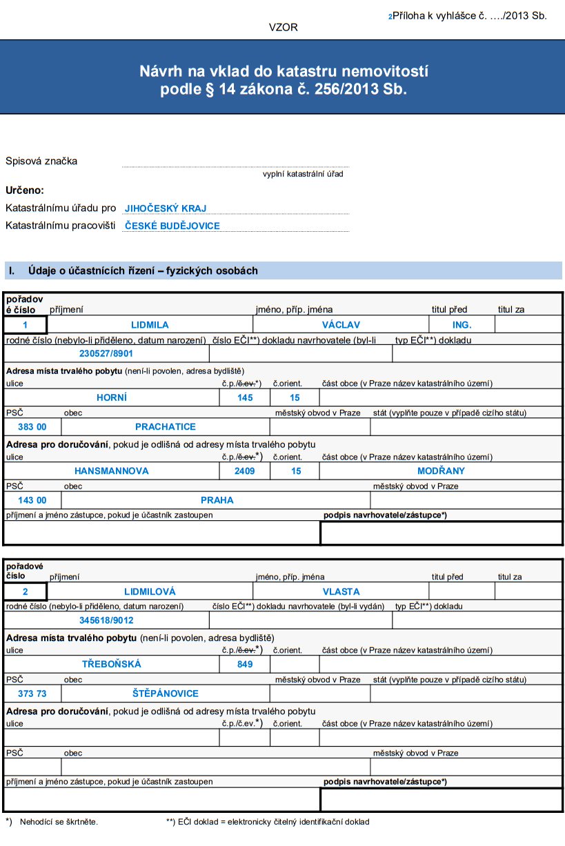 - Návrh na vklad do katastru nemovitostí 2024 Vyplněný vzor (89 KB) ➤